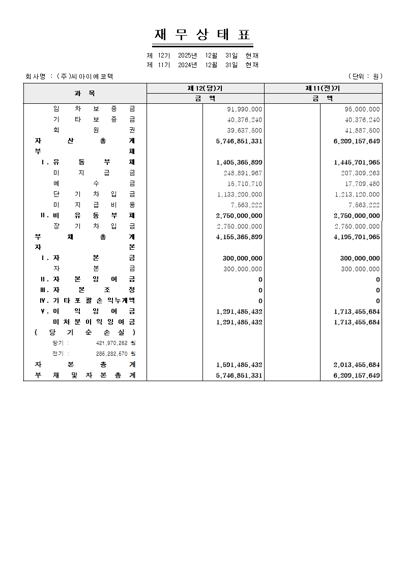 씨아이에코텍 결산공고 (2025년도)